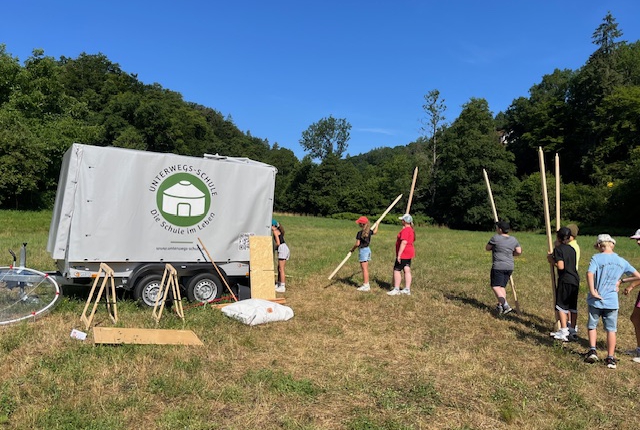 Um nach dem Konzept zu arbeiten, braucht man nicht gleich ein Unterwegs-Schul-Klassenzimmer. Das Draußenlernen und Lernen an Lernorten rund um eine Schule bietet schon reichhaltige Lernanlässe.